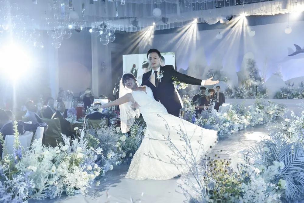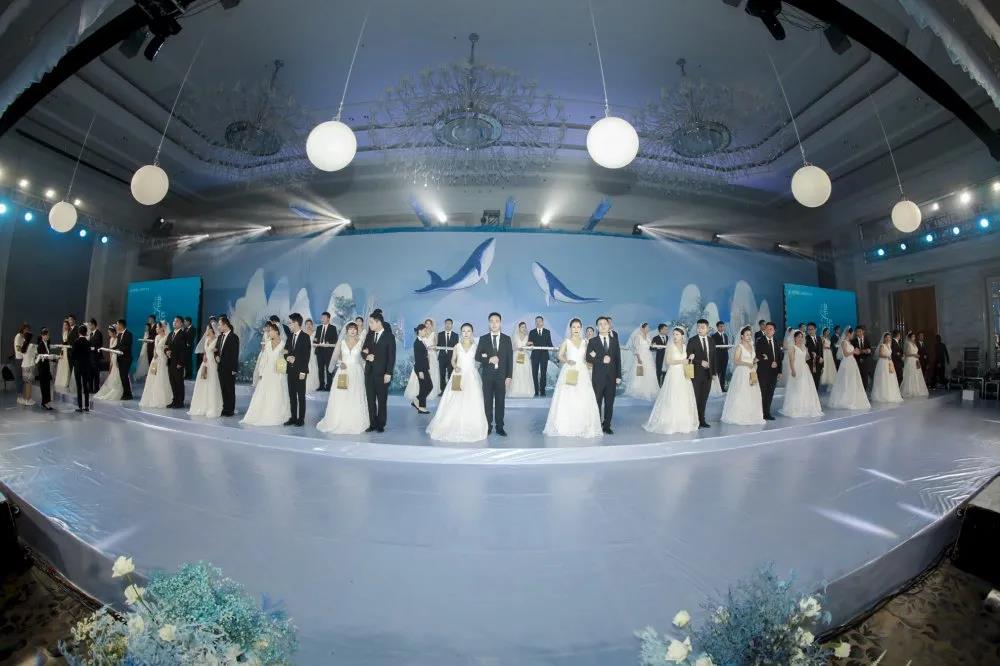 梦境中走出的“海的女儿”拉开梦幻婚礼的序幕,30对新人在“海洋精灵”的引领下依次入场,脸上洋溢着无比幸福的笑容,以默契合拍的舞蹈展示,成为全场焦点。