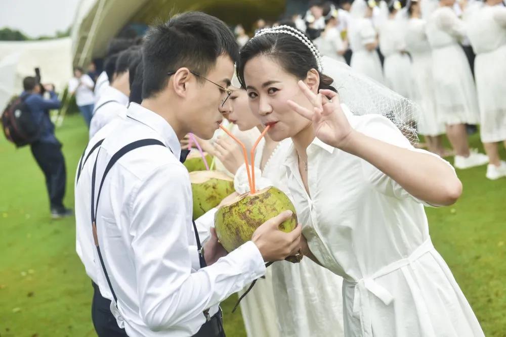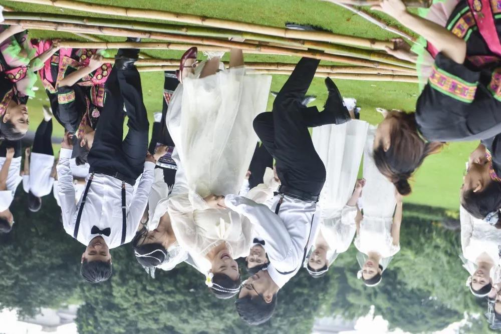上午9点08分,30对新人在别具风情的黎族欢迎仪式中开启了浪漫的求婚之旅,热情欢快的竹竿舞、青春洋溢的快闪舞蹈,将现场欢乐气氛推向高潮。