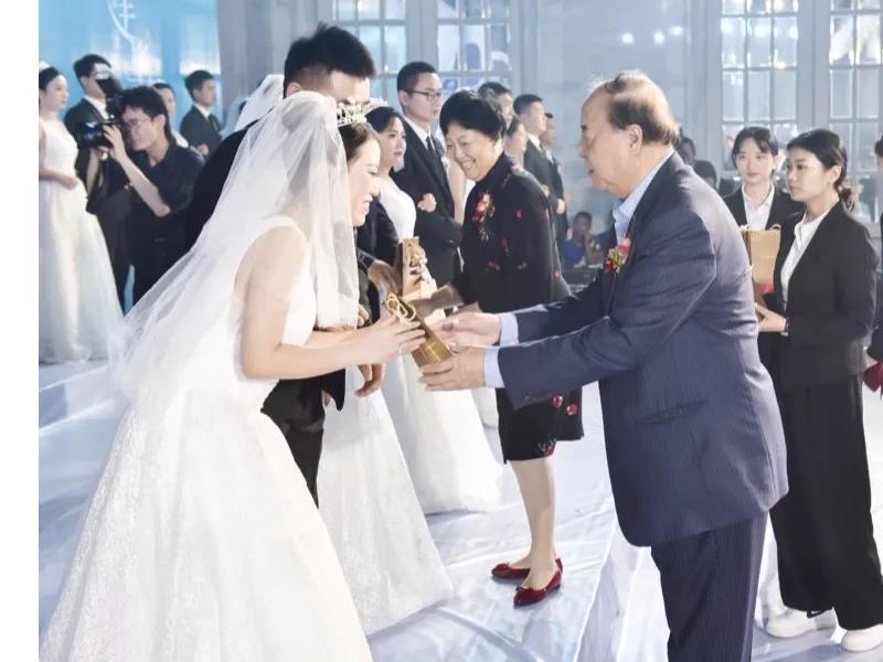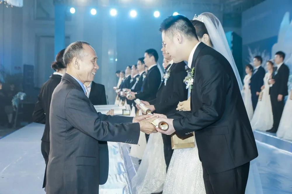 许景新先生亲自为新人们证婚,对全体新人喜结良缘表示祝贺,希望全体新人在人生旅程中互敬互爱、和睦相处,用心经营幸福家庭,用爱缔造美好未来!